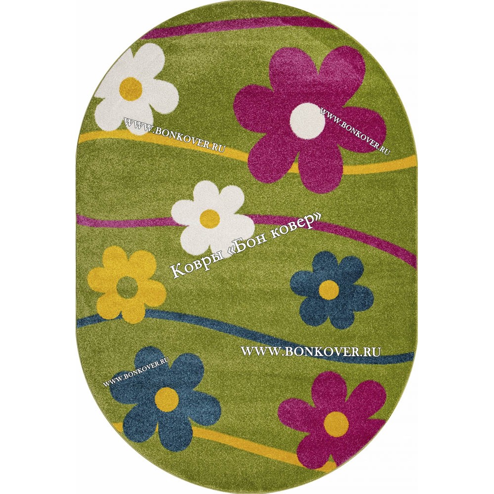 Изящный Ковер для детской зеленый дизайн 101 Овал наполняет интерьер квартиры теплом и уютом, гармонично сочетает в себе изящество и красоту. Он изготовлен из экологически чистого сырья, прочный и долговечный.